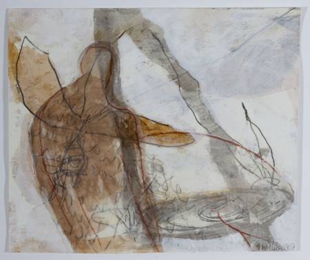 Graphit, Schellack, Acryl, Collage auf Papier, 24x32