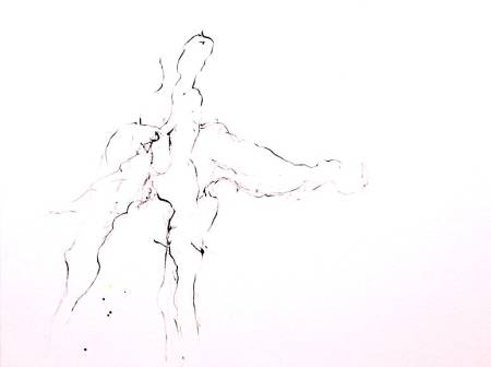 Tanz um, 1996, Graphit, Tuschen, Schellack auf Papier, 24x34